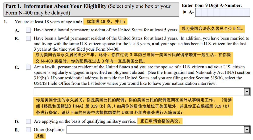 A 成为美国绿卡持有者5年以上。这项中申请者持有绿卡至少5年,但可以提前3个月填写申请。 不能超过提前3个月申请,1天也不行,违反规定的申请会被退回或面谈时拒绝申请。
